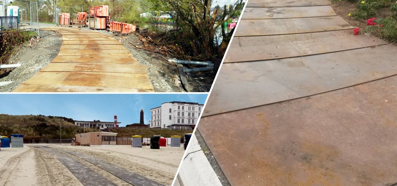 Flexible Fahrbahnplatten helfen Ihnen beim unkomplizierten Erreichen Ihres Bestimmungsortes und verhindern das Einsinken von Fahrzeugen. Die mobilen Fahrplatten optimieren zuverlässig unbefestigtes Gelände.