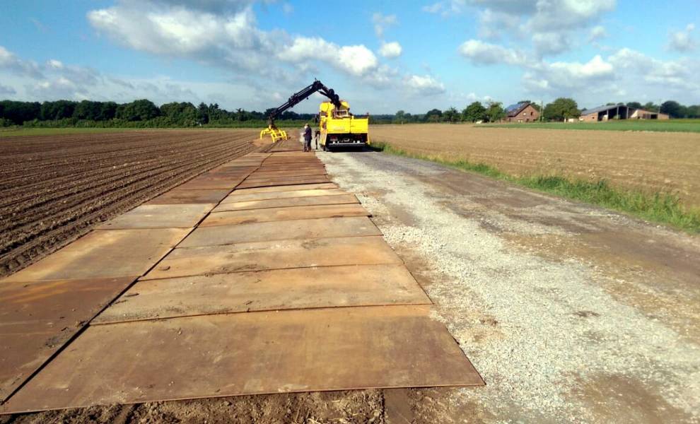 Bei Schwertransporten müssen die Wege unterschiedlichsten Belastungen standhalten. Dabei gilt es unnötige Standzeit zu reduzieren und die Wirtschaftlichkeit des Fahrzeugeinsatzes im Blick zu behalten. Damit Sie sicher an Ihren Bestimmungsort kommen und dabei möglichst wenig Zeit verlieren, kümmern wir uns um den kompletten Ausbau der Strecken. Wir sorgen für verkehrssicheres Passieren, stellen die Freihaltung des Lichtraumprofils an Straßen sicher und legen Ihnen mit mobilen Fahrplatten und Stahlplatten einen stabilen und sicheren Untergrund, um unwegsame Strecken befahren zu können.